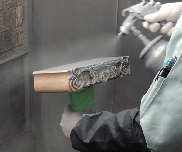 木地に、下地から幾重にも漆などを塗り重ねていく職人。